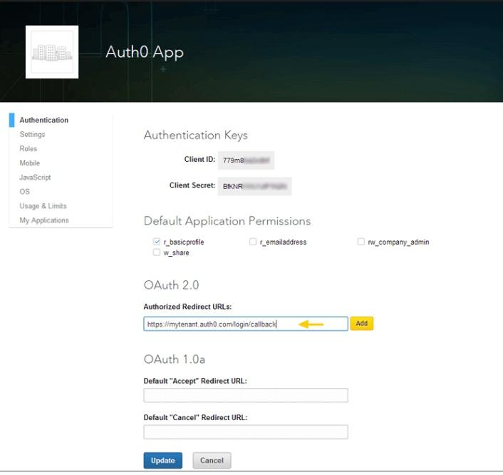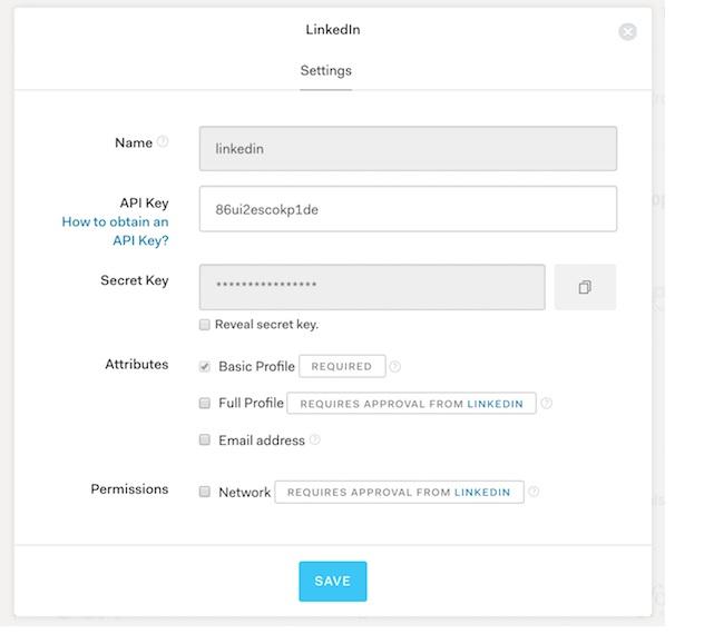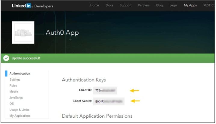 To connect your Auth0 app to LinkedIn, you will need to generate a Client ID and Client Secret into your Auth0 settings, and enable the connection.